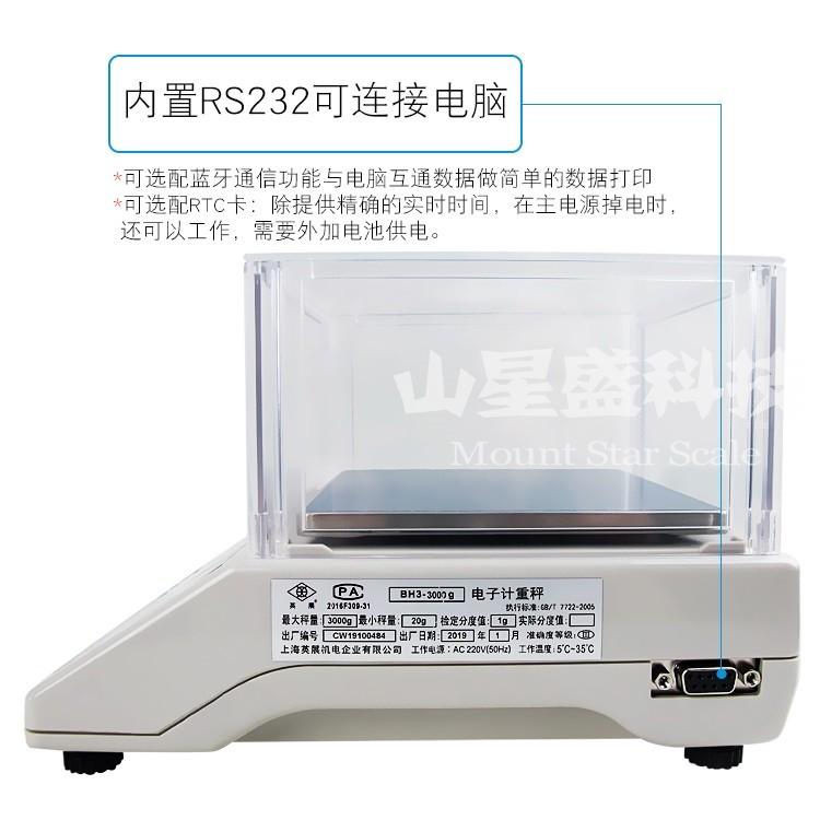 | 秤量 | BH3-300g Max=300g e=0.1g d=0.005g (圓秤盤) BH3-600g Max=600g e=0.2g d=0.01g (圓秤盤) BH3-1200g Max=1200g e=0.2g d=0.02g (方秤盤) BH3-3000g Max=3000g e=1g d=0.05g (方秤盤) |